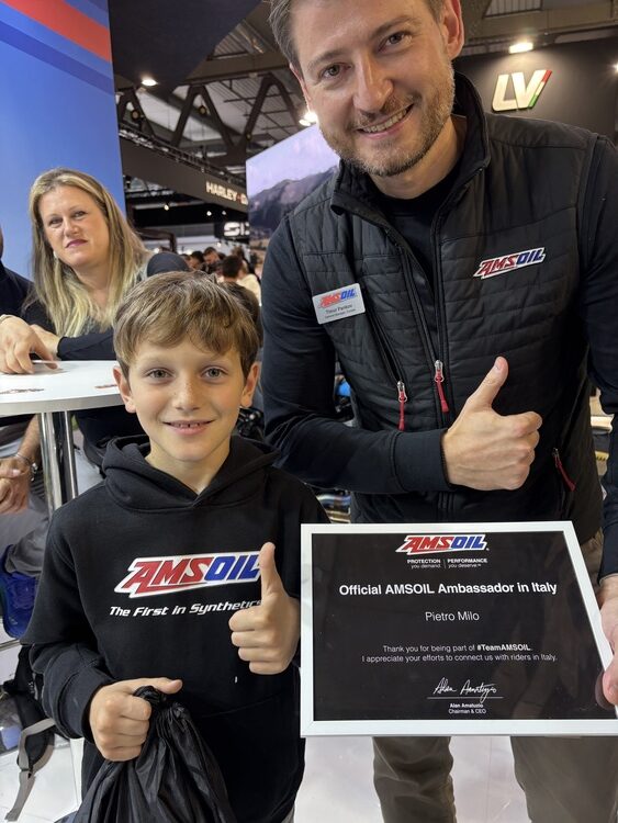 Durante il weekend dell’EICMA, lo stand AMSOIL è stato letteralmente preso d’assalto da centinaia di ragazzi desiderosi di ricevere i gadget del brand. Questo entusiasmo spontaneo è un segnale importante: AMSOIL non è solo sinonimo di prestazioni tecniche e affidabilità, ma rappresenta anche internazionalità, qualità e carattere. I giovani appassionati riconoscono nel brand un’identità forte, capace di ispirare e rappresentare un lifestyle legato alla passione per i motori e alla ricerca dell’eccellenza.